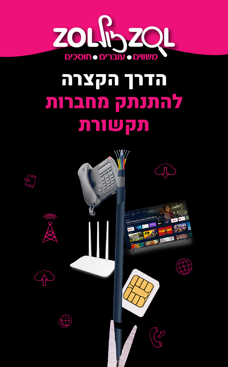 סוג השירות בחר שירות לניתוק אינטרנט סלולר טלוויזיה
